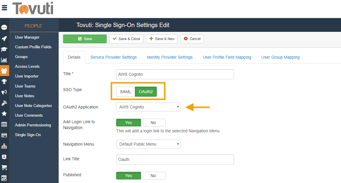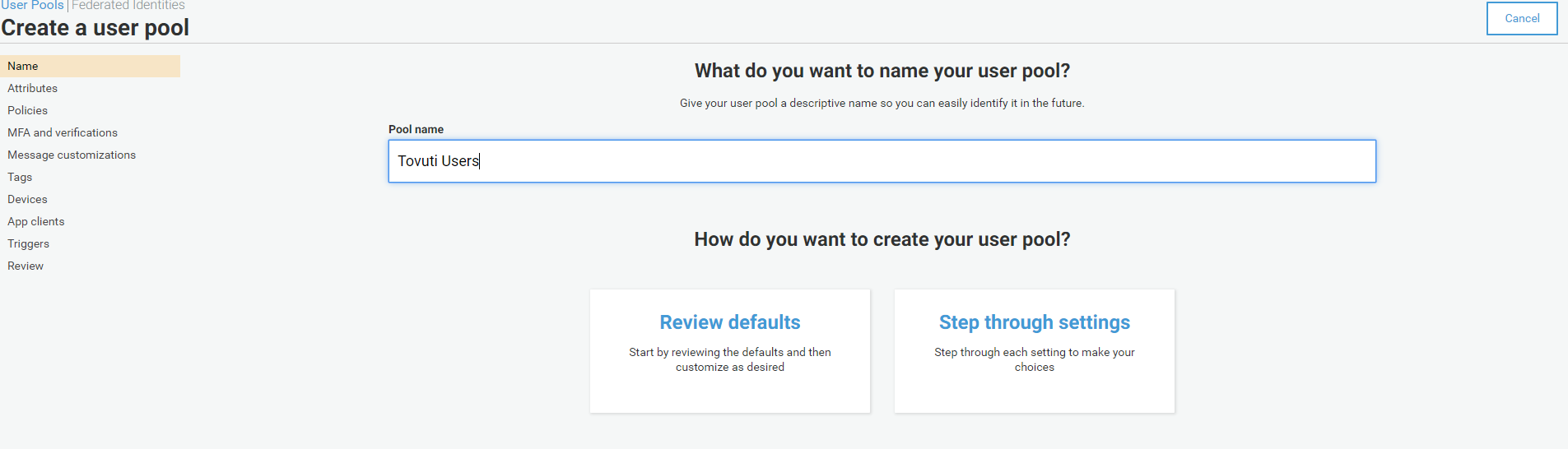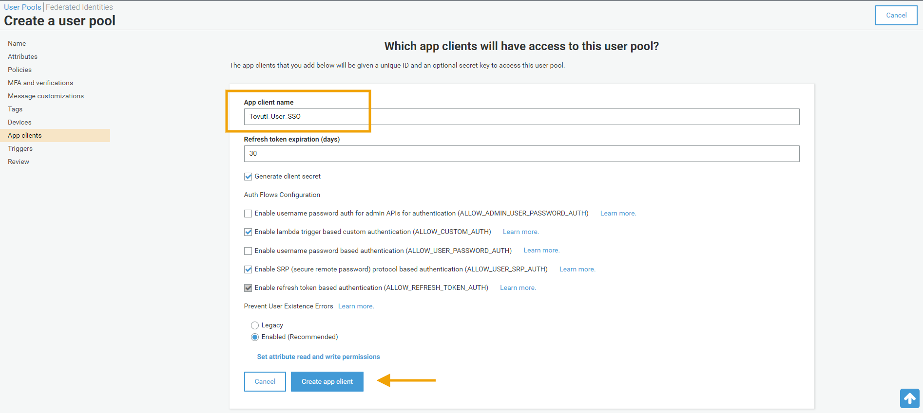 Full walk-through to setup and enable AWS Cognito SSO with Tovuti.