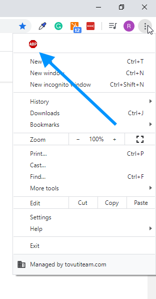 - Click on the little icon for AdBlock Plus.