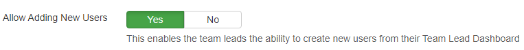 - This enables the team leads the ability to create new users from their Team Lead Dashboard