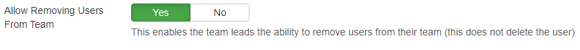 With this option enabled, a Team Lead can remove users from their team, but not the system itself, by clicking "Edit" and "Remove from Team".