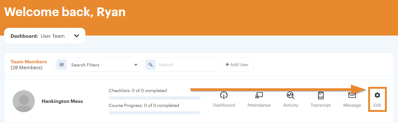 Additionally, a Team Lead can edit and administer their users by clicking "Edit" next to a users in their team: