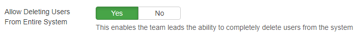 With this option enabled, you can allow your Team Leads to delete users from the system within their team.
