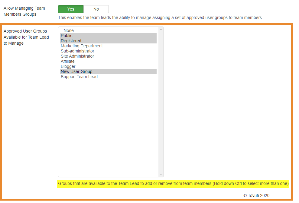 With this option enabled, it allows you to select user groups that the Team Lead can add/remove users from in the Edit/Create menu.