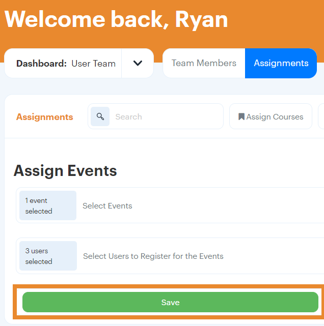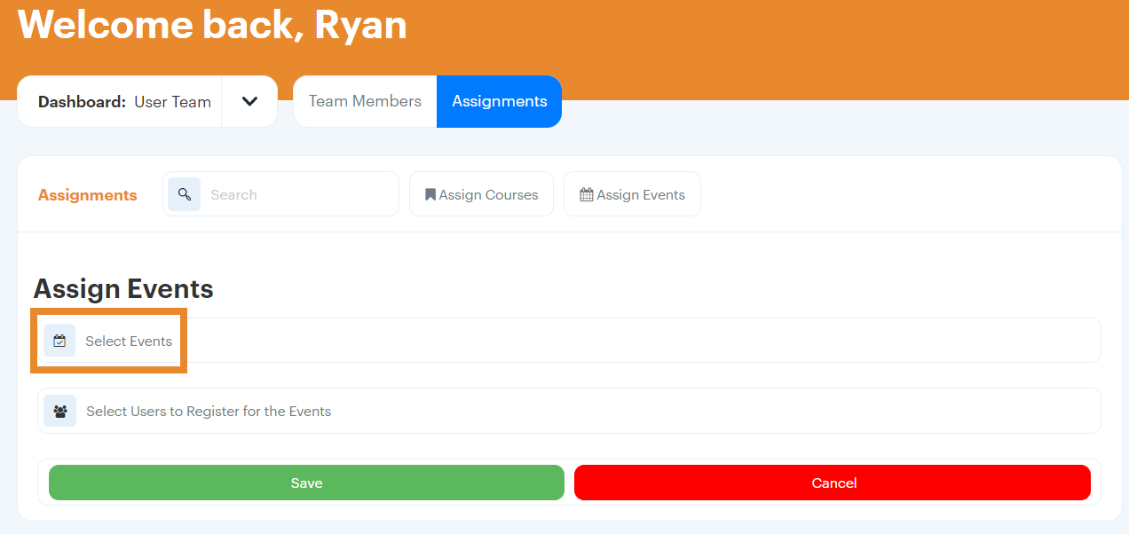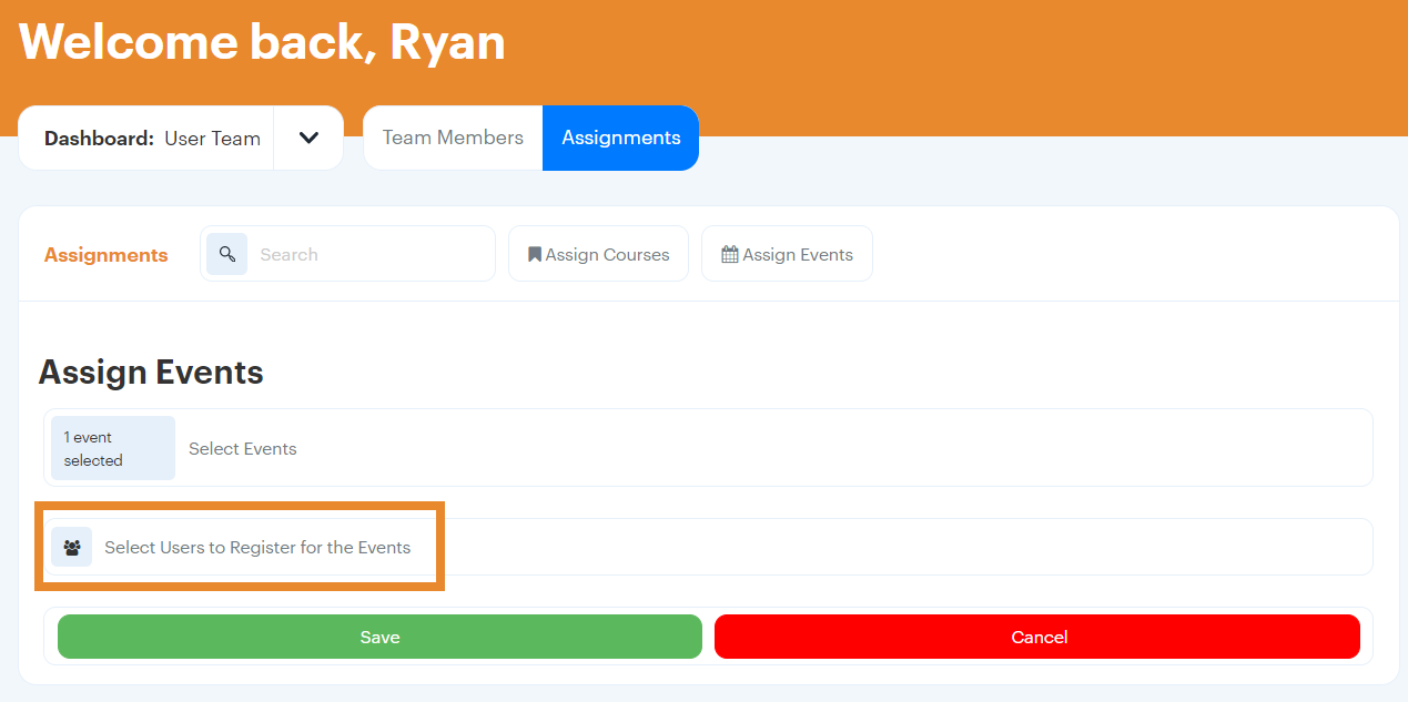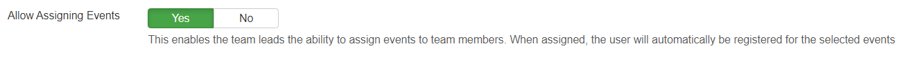 - This enables the team leads the ability to assign events to team members. When assigned, the user will automatically be registered for the selected events