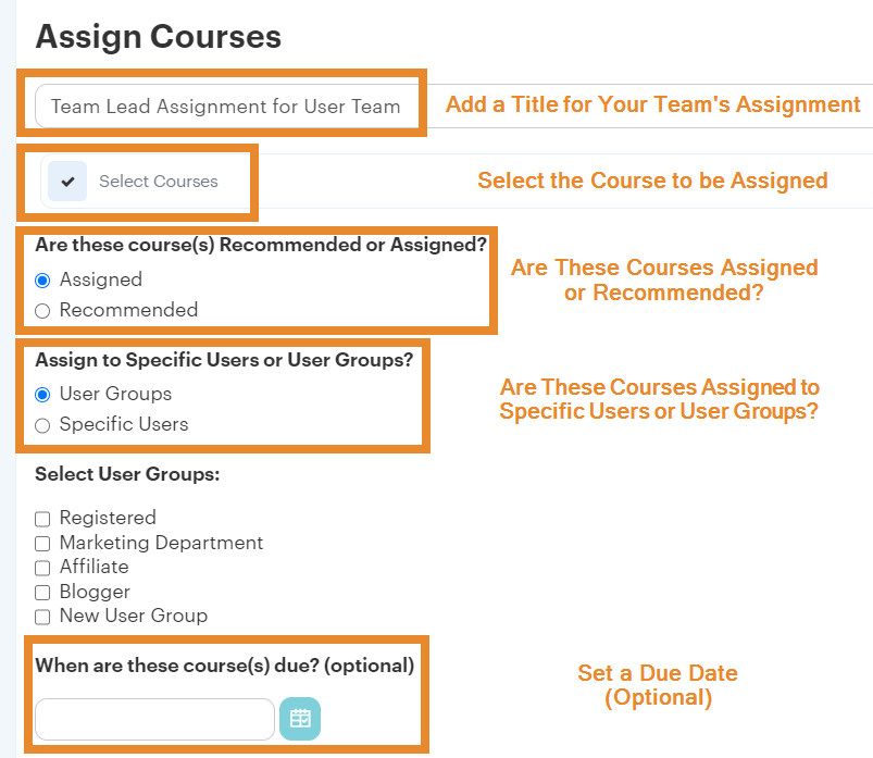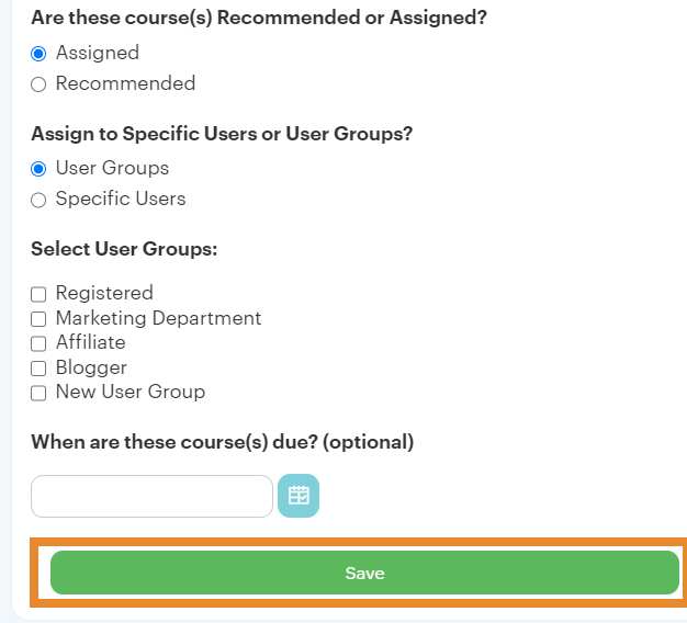 Once you have finalized your options, click Save for the course assignment to go out to your team!