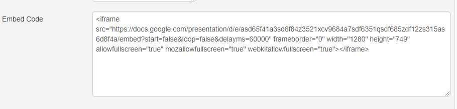 2. Paste the code from Google when publishing your Google document into the Embed Code box: